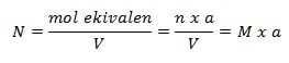 Normalitas adalah jumlah mol ekivalen zat terlarut dalam 1 liter larutan. Satuan normalitas adalah mol ek/L.